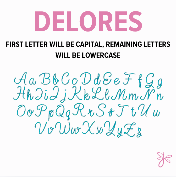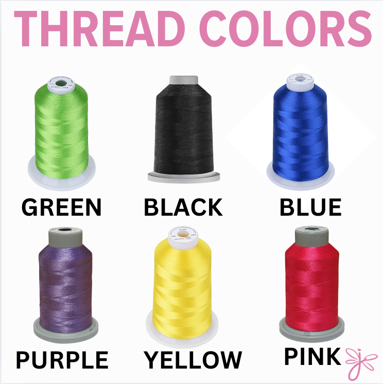 CUSTOMIZATION: Please choose (1) Font Style (2) Thread Color and (3) Specify Name