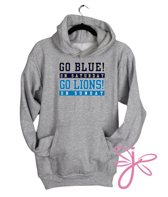 “Go Blue on Saturday and Go Lions on Sunday” in classic maize and blue.